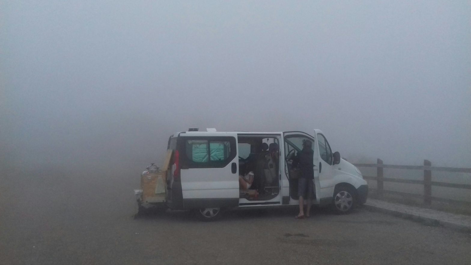 8h, Mikael part pour 6 heures de rando à travers les Picos… À son retour on lève le camp pour traverser dans notre wrobi les jolies routes des Picos. Point de chute pour la nuit sur la route de Cain, où nous nous retrouvons littéralement dans un nuage.